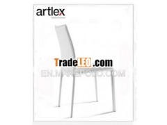 Thestackable dining chair made of iron frame with recycle leather orcrocodile figure leather.